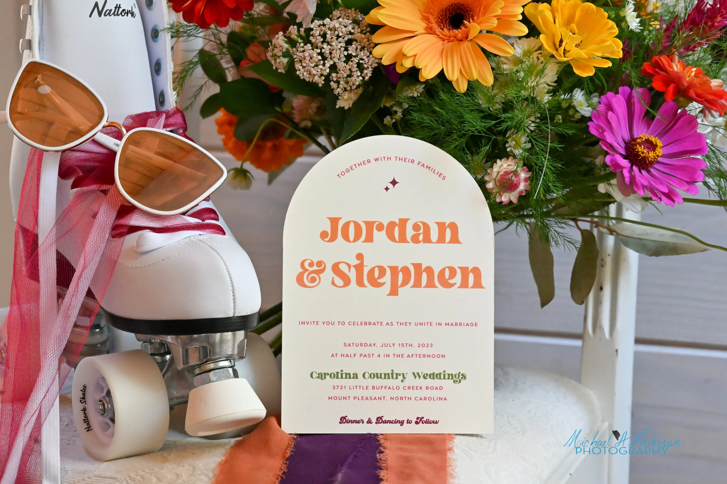Jennifer from Flourish Wedding Design incorporated fresh, vibrant flowers to create an explosion of color and texture throughout the entire space. From joyful sunflowers to dazzling gerbera daisies, these blooms add a lively touch that perfectly complement the vibrant vibe! Jennifer’s focus on producing sustainable weddings is so appreciated by all of us here at Carolina Country Weddings.