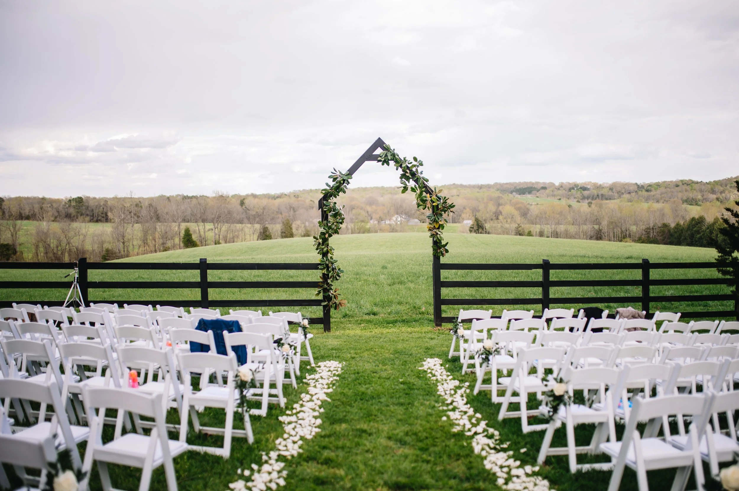 This clean, modern, simple Meadowview ceremony site has long range views of rolling hills and peaceful pastures. It allows you to take center stage in the midst of abundant organic beauty.